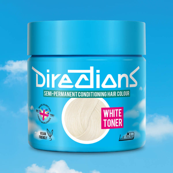 Directions White Toner è una tinta semipermanente per capelli dal colore toner bianco per neutralizzare i toni gialli e creare basi chiare.